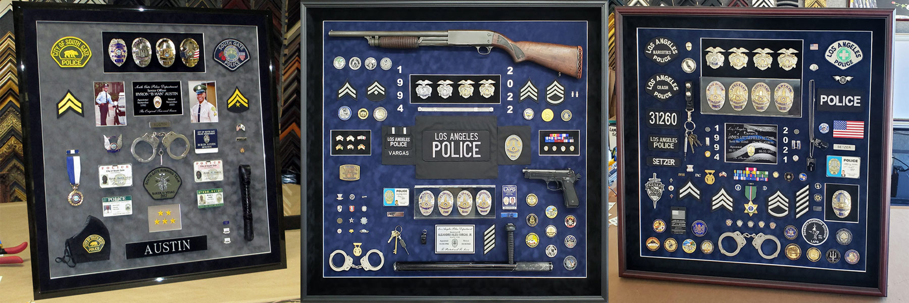 We specialize in creating personalized and unique framing solutions to preserve your cherished memories, accomplishments, and stories. Our diverse range of services ensures that we can create the perfect display to honor and showcase your hard work and dedication. Whether you're framing police memorabilia, military awards, or personal achievements, our team is dedicated to bringing your vision to life and creating a lasting tribute that will be cherished for generations to come.
